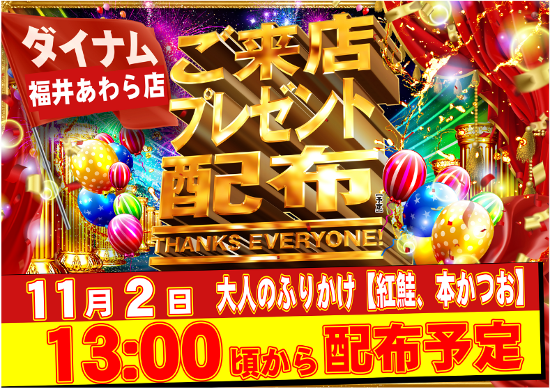 11月2日(日)大人のふりかけ 紅鮭・本かつお【ダイナム福井あわら店 ゆったり館】 └オリジナル景品 11月2日(日)大人のふりかけ 紅鮭・本かつお【ダイナム福井あわら店 ゆったり館】 └オリジナル景品 2025.11.02 ダイナム福井あわら店 ゆったり館 福井県あわら市舟津49字江中6番地 詳しく見る