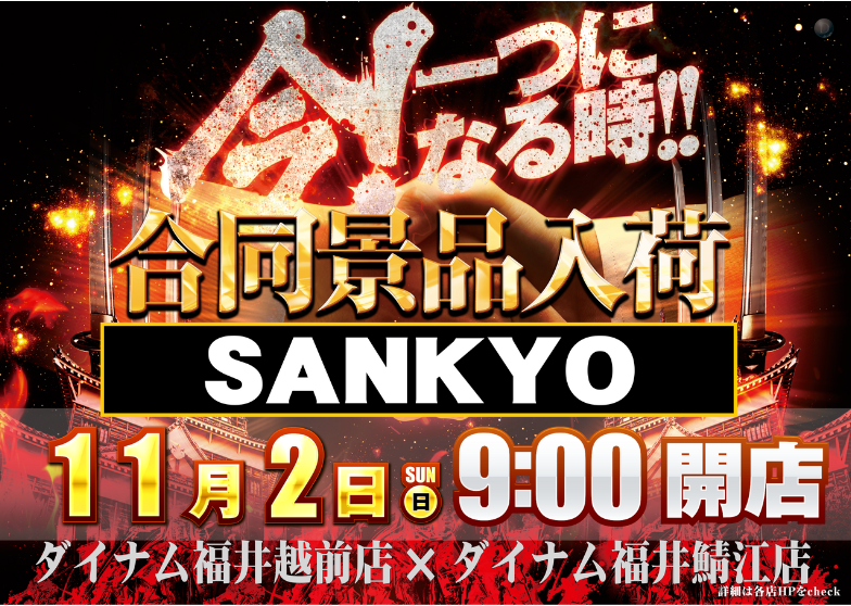 11月2日(日)SANKYO【ダイナム福井鯖江店 ゆったり館】 └オリジナル景品 11月2日(日)SANKYO【ダイナム福井鯖江店 ゆったり館】 └オリジナル景品 2025.11.02 ダイナム福井鯖江店 ゆったり館 福井県鯖江市杉本町24字上開田21-2 詳しく見る