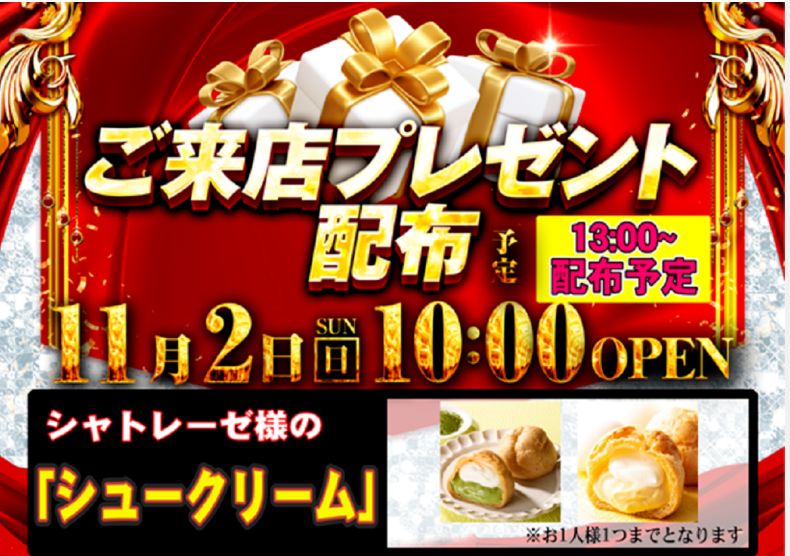 11月2日(日)シュークリーム【ダイナム鹿島町店 ゆったり館】 └オリジナル景品 11月2日(日)シュークリーム【ダイナム鹿島町店 ゆったり館】 └オリジナル景品 2025.11.02 ダイナム鹿島町店 ゆったり館 石川県鹿島郡中能登町井田ち18番地 詳しく見る