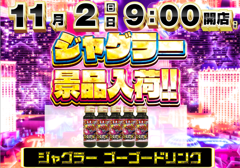 11月2日(日)ジャグラー ゴーゴードリンク【ダイナム富山高岡波岡店 ゆったり館】 └オリジナル景品 11月2日(日)ジャグラー ゴーゴードリンク【ダイナム富山高岡波岡店 ゆったり館】 └オリジナル景品 2025.11.02 ダイナム富山高岡波岡店 ゆったり館 富山県高岡市波岡323番地1 詳しく見る