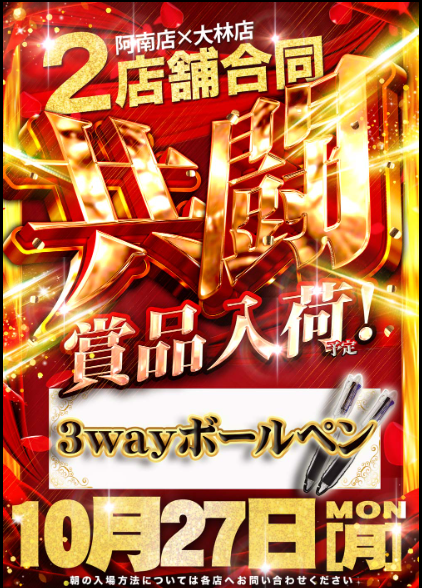 10月27日(月)3wayボールペン【123阿南店】 └オリジナル景品 10月27日(月)3wayボールペン【123阿南店】 └オリジナル景品 2025.10.27 123阿南店 徳島県阿南市学原町深田20 詳しく見る