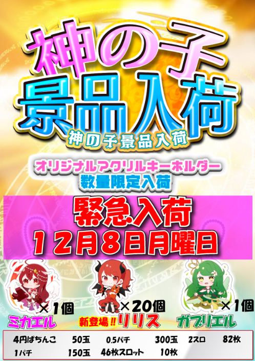 12月8日(月)神の子オリジナルアクリルキーホルダー【クァトロブーム鹿島】 └オリジナル景品 12月8日(月)神の子オリジナルアクリルキーホルダー【クァトロブーム鹿島】 └オリジナル景品 2025.12.08 クァトロブーム鹿島 石川県鹿島郡中能登町井田と1-1 詳しく見る