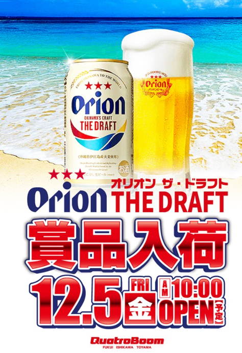 12月5日(金)オリオン ザ・ドラフト【クァトロブーム金沢】 └オリジナル景品 12月5日(金)オリオン ザ・ドラフト【クァトロブーム金沢】 └オリジナル景品 2025.12.05 クァトロブーム金沢 石川県金沢市大河端西1丁目33番地1 詳しく見る