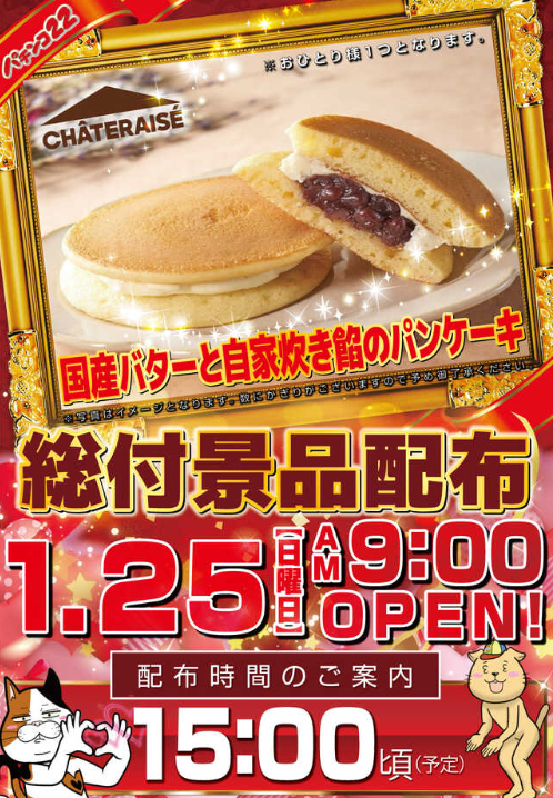 1月25日(日)国産バターと自家焚き餡のパンケーキ【パチンコ22鶴岡店】 └オリジナル景品 1月25日(日)国産バターと自家焚き餡のパンケーキ【パチンコ22鶴岡店】 └オリジナル景品 2026.01.25 パチンコ22鶴岡店 山形県鶴岡市平京田屋敷廻2-1 詳しく見る