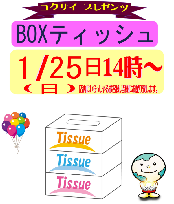 1月25日(日)BOXティッシュ【パーラー国際山形中央店】 └オリジナル景品 1月25日(日)BOXティッシュ【パーラー国際山形中央店】 └オリジナル景品 2026.01.25 パーラー国際山形中央店 山形県山形市南栄町1-1-15 詳しく見る