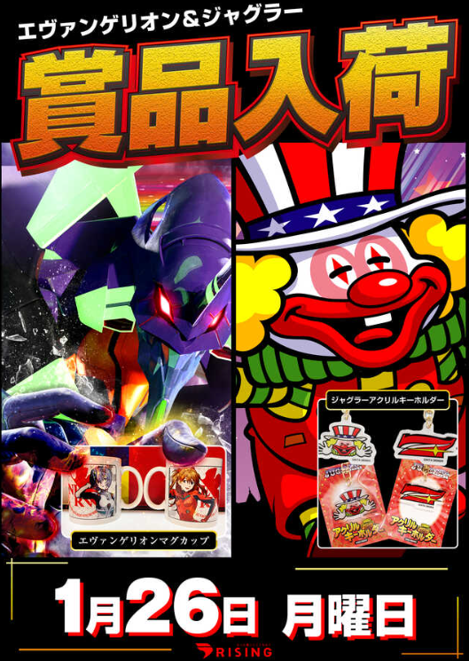 1月26日(月)エヴァンゲリオンマグカップ・ジャグラーアクリルキーホルダー【ライジング大館】 └オリジナル景品 1月26日(月)エヴァンゲリオンマグカップ・ジャグラーアクリルキーホルダー【ライジング大館】 └オリジナル景品 2026.01.26 ライジング大館 秋田県大館市山館羽立79 詳しく見る