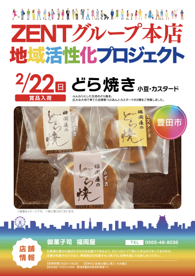 2月22日(日)どら焼き 小豆・カスタード【ZENT豊田本店】 └オリジナル景品 2月22日(日)どら焼き 小豆・カスタード【ZENT豊田本店】 └オリジナル景品 2026.02.22 ZENT豊田本店 愛知県豊田市若林西町北長根13番地12 詳しく見る