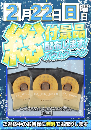 2月22日(日)総付景品 バウムクーヘン【コスモジャパン西尾店】 └オリジナル景品 2月22日(日)総付景品 バウムクーヘン【コスモジャパン西尾店】 └オリジナル景品 2026.02.22 コスモジャパン西尾店 愛知県西尾市平坂町上縄130-1 詳しく見る