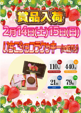 2月14日(土)メルティーキッスプレミアムショコラ他【ダイナム福岡福津店 ゆったり館】 └オリジナル景品 2026.02.14 ダイナム福岡福津店 ゆったり館 福岡県福津市宮司一丁目8番47号 詳しく見る 福津市