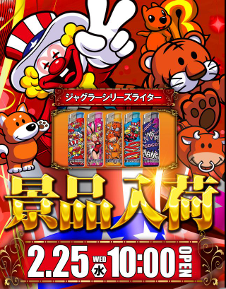 2月25日(水)ジャグラーシリーズライター【イーグル R-1 十三駅東口店】 └オリジナル景品 2026.02.25 イーグル R-1 十三駅東口店 大阪府大阪市淀川区十三東2-12-47 詳しく見る 大阪市淀川区