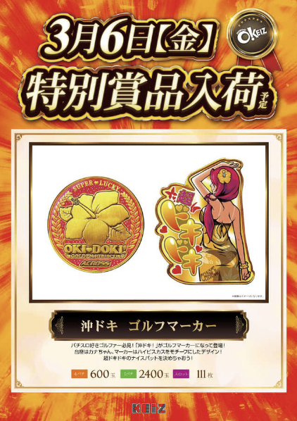 3月6日(金)沖ドキ ゴルフマーカー【KEIZ土岐店】 └オリジナル景品 3月6日(金)沖ドキ ゴルフマーカー【KEIZ土岐店】 └オリジナル景品 2026.03.06 KEIZ土岐店 岐阜県土岐市泉町河合623-1 詳しく見る