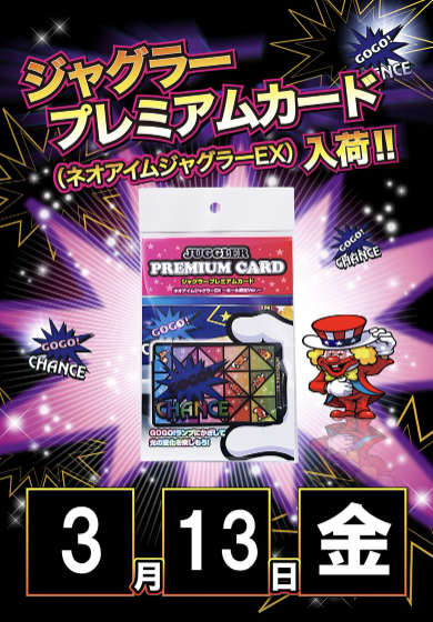 3月13日(金)ジャグラープレミアムカード(ネオアイムジャグラーEX)【ZENT豊橋藤沢店】 └オリジナル景品 3月13日(金)ジャグラープレミアムカード(ネオアイムジャグラーEX)【ZENT豊橋藤沢店】 └オリジナル景品 2026.03.13 ZENT豊橋藤沢店 愛知県豊橋市藤沢町141-11(MEGAドン・キホーテ豊橋店内) 詳しく見る