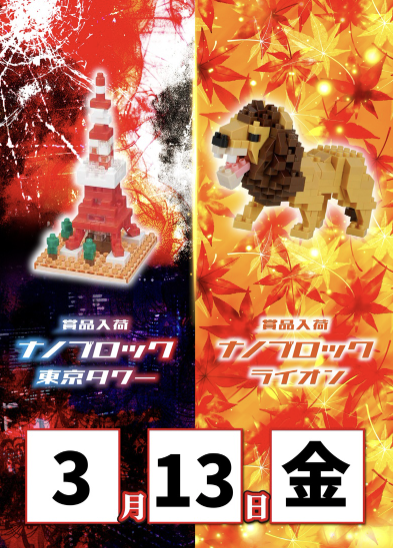 3月13日(金)ナノブロック東京タワー・ナノブロックライオン【ZENT豊橋藤沢店】 └オリジナル景品 3月13日(金)ナノブロック東京タワー・ナノブロックライオン【ZENT豊橋藤沢店】 └オリジナル景品 2026.03.13 ZENT豊橋藤沢店 愛知県豊橋市藤沢町141-11(MEGAドン・キホーテ豊橋店内) 詳しく見る