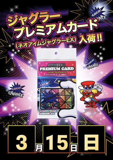 3月15日(日)ジャグラープレミアムカード(ネオアイムジャグラーEX)【ZENT若林店】 └オリジナル景品 3月15日(日)ジャグラープレミアムカード(ネオアイムジャグラーEX)【ZENT若林店】 └オリジナル景品 2026.03.15 ZENT若林店 愛知県豊田市若林東町雁股5-1 詳しく見る