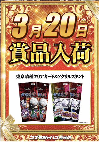 3月20日(金)東京喰種クリアカード&アクリルスタンド【コスモジャパン西尾店】 └オリジナル景品 3月20日(金)東京喰種クリアカード&アクリルスタンド【コスモジャパン西尾店】 └オリジナル景品 2026.03.20 コスモジャパン西尾店 愛知県西尾市平坂町上縄130-1 詳しく見る