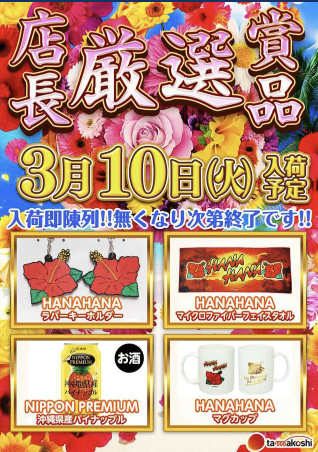 3月15日(日)HANAHANAグッズ【ZENT豊田本店】 └オリジナル景品 3月15日(日)HANAHANAグッズ【ZENT豊田本店】 └オリジナル景品 2026.03.15 ZENT豊田本店 愛知県豊田市若林西町北長根13番地12 詳しく見る