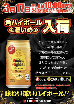 3月17日(火)角ハイボール 濃いめ【ARROW八尾駅前店】 └オリジナル景品 3月17日(火)角ハイボール 濃いめ【ARROW八尾駅前店】 └オリジナル景品 2026.03.17 ARROW八尾駅前店 大阪府八尾市北本町2-15-1 詳しく見る