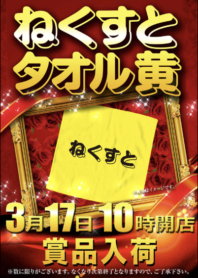 3月17日(火)ねくすとタオル黄【123和歌山インター店】 └オリジナル景品 3月17日(火)ねくすとタオル黄【123和歌山インター店】 └オリジナル景品 2026.03.17 123和歌山インター店 和歌山県和歌山市出島281-1 詳しく見る