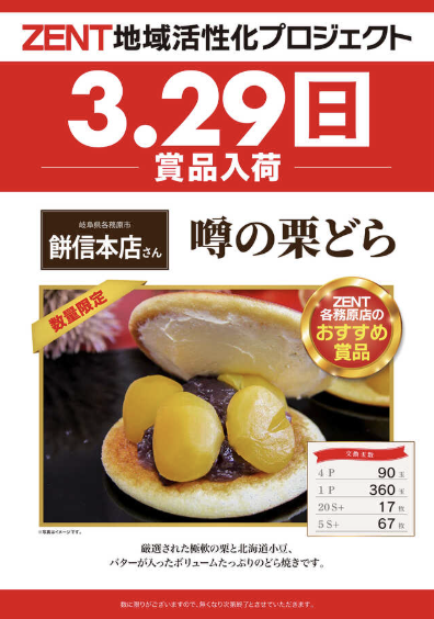 3月29日(日)噂の栗どら【ZENT岡崎インター店】 └オリジナル景品 3月29日(日)噂の栗どら【ZENT岡崎インター店】 └オリジナル景品 2026.03.29 ZENT岡崎インター店 愛知県岡崎市大平町字堤上1 詳しく見る