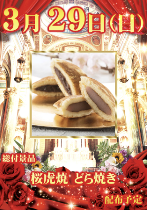 3月29日(日)総付景品 桜虎焼どら焼き【リブレ尾張瀬戸】 └オリジナル景品 3月29日(日)総付景品 桜虎焼どら焼き【リブレ尾張瀬戸】 └オリジナル景品 2026.03.29 リブレ尾張瀬戸 愛知県瀬戸市西原町2-110 詳しく見る
