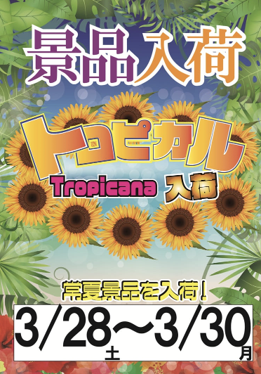 3月28日(土)〜30日(月)トロピカル景品【チャンピオンタイキ蒲郡店】 └オリジナル景品 3月28日(土)〜30日(月)トロピカル景品【チャンピオンタイキ蒲郡店】 └オリジナル景品 2026.03.30 チャンピオンタイキ蒲郡店 愛知県蒲郡市竹谷町西ノ浜35-12 詳しく見る