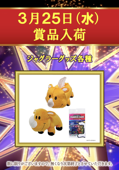 3月23日(月)無双【QUICK7大須店】 └オリジナル景品 3月23日(月)無双【QUICK7大須店】 └オリジナル景品 2026.03.23 QUICK7大須店 愛知県名古屋市中区大須3-31-11 詳しく見る