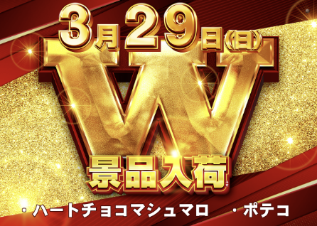 3月29日(日)ハートチョコマシュマロ・ポテコ【ダイナム岐阜本巣店 ゆったり館】 └オリジナル景品 3月29日(日)ハートチョコマシュマロ・ポテコ【ダイナム岐阜本巣店 ゆったり館】 └オリジナル景品 2026.03.29 ダイナム岐阜本巣店 ゆったり館 岐阜県本巣市温井57番地1 詳しく見る