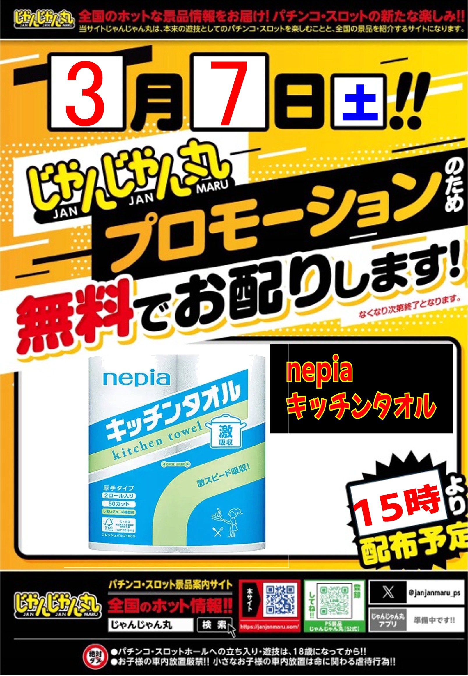 3月7日(土)【じゃんじゃん丸プロモーション】キッチンタオルの配布!ニューダイヤ塩山店にて! └オリジナル景品 3月7日(土)【じゃんじゃん丸プロモーション】キッチンタオルの配布!ニューダイヤ塩山店にて! └オリジナル景品 2026.03.07 ニューダイヤ塩山店 山梨県甲州市塩山下塩後538-1 詳しく見る