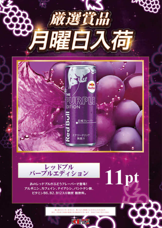 3月2日(月)レッドブル パープルエディション【KEIZ LAPARK金沢店】 └オリジナル景品 3月2日(月)レッドブル パープルエディション【KEIZ LAPARK金沢店】 └オリジナル景品 2026.03.02 KEIZ LAPARK金沢店 石川県金沢市西泉4-11 詳しく見る