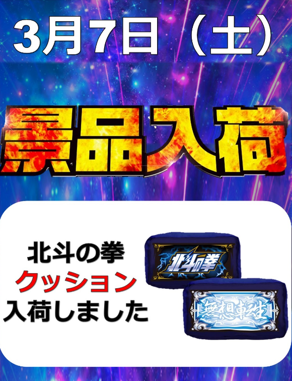3月7日(土)北斗の拳 クッション【夢屋加賀店】 └オリジナル景品 3月7日(土)北斗の拳 クッション【夢屋加賀店】 └オリジナル景品 2026.03.07 夢屋加賀店 石川県加賀市中代町396-1 詳しく見る