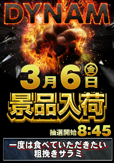 3月6日(金)一度は食べていただきたい粗挽きサラミ【ダイナム福井丸岡店】 └オリジナル景品 3月6日(金)一度は食べていただきたい粗挽きサラミ【ダイナム福井丸岡店】 └オリジナル景品 2026.03.06 ダイナム福井丸岡店 福井県坂井市丸岡町高柳3字浜12 詳しく見る