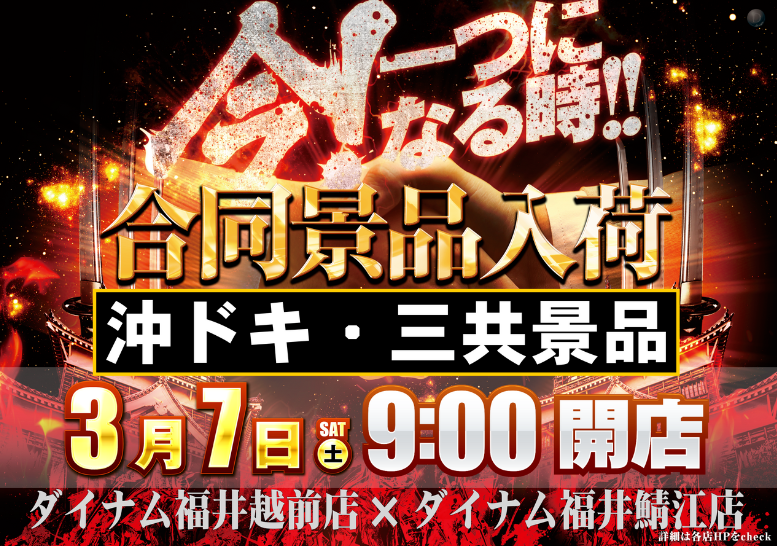 3月8日(日)山佐・沖ドキ景品【ダイナム福井丸岡店】 └オリジナル景品 3月8日(日)山佐・沖ドキ景品【ダイナム福井丸岡店】 └オリジナル景品 2026.03.08 ダイナム福井丸岡店 福井県坂井市丸岡町高柳3字浜12 詳しく見る