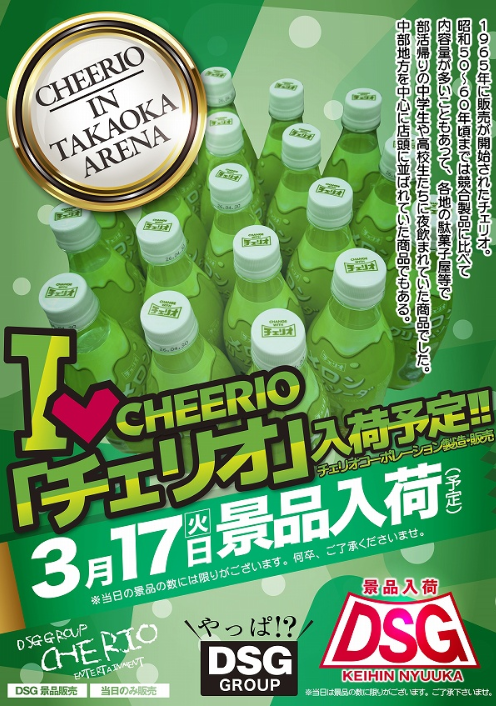 3月17日(火)チェリオ【DSGアリーナ高岡店】 └オリジナル景品 3月17日(火)チェリオ【DSGアリーナ高岡店】 └オリジナル景品 2026.03.17 DSGアリーナ高岡店 富山県高岡市四屋622-1 詳しく見る