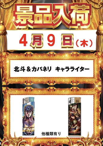 4月9日(木)北斗&カバネリ キャラライター【夢屋天草店】 └オリジナル景品 4月9日(木)北斗&カバネリ キャラライター【夢屋天草店】 └オリジナル景品 2026.04.09 夢屋天草店 熊本県天草市本渡町本戸馬場2254 詳しく見る