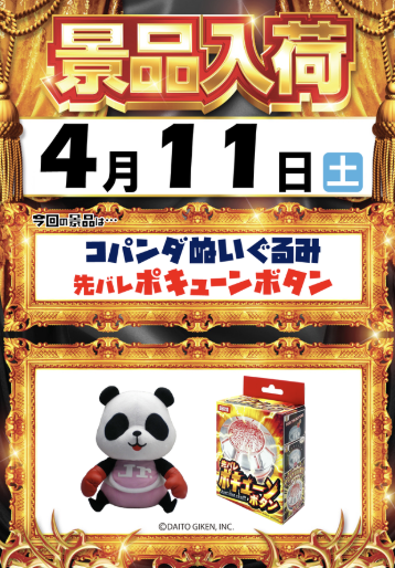 4月9日(木)ANDEパン【ピンクキャット田辺店】 └オリジナル景品 4月9日(木)ANDEパン【ピンクキャット田辺店】 └オリジナル景品 2026.04.09 ピンクキャット田辺店 和歌山県田辺市新庄町1667-2 詳しく見る