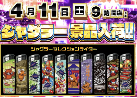 4月15日(水)ジャグラーグッズ各種【ZENT扶桑店】 └オリジナル景品 4月15日(水)ジャグラーグッズ各種【ZENT扶桑店】 └オリジナル景品 2026.04.15 ZENT扶桑店 愛知県丹羽郡扶桑町大字高雄字突田1番地 詳しく見る