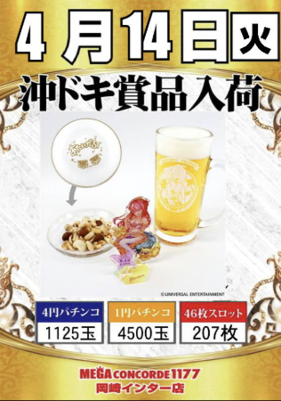 4月14日(火)沖ドキ賞品【MEGAコンコルド1177岡崎インター店】 └オリジナル景品 2026.04.14 MEGAコンコルド1177岡崎インター店 愛知県岡崎市欠町野添14-1 詳しく見る 岡崎市