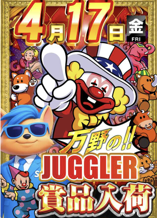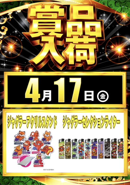 4月17日(金)ジャグラー アクリルスタンド・セレクションライター【ダイナム大阪貝塚店 ゆったり館】 └オリジナル景品 2026.04.17 ダイナム大阪貝塚店 ゆったり館 大阪府貝塚市澤931番地2 詳しく見る 貝塚市