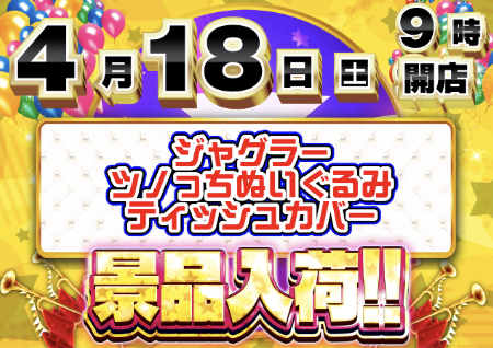4月16日(木)ジャグラー景品【夢屋高山店】 └オリジナル景品 4月16日(木)ジャグラー景品【夢屋高山店】 └オリジナル景品 2026.04.16 夢屋高山店 岐阜県高山市下岡本町3081-1 詳しく見る
