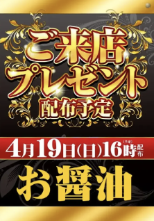 4月19日(日)ご来店プレゼント お醤油【ダイナム静岡新居店 ゆったり館】 └オリジナル景品 2026.04.19 ダイナム静岡新居店 ゆったり館 静岡県湖西市新居町中之郷字菅ケ谷2868番地2 詳しく見る 湖西市