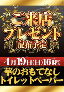 4月19日(日)ご来店プレゼント 華のおもてなしトイレットペーパー【ダイナム静岡御前崎店】 └オリジナル景品 2026.04.19 ダイナム静岡御前崎店 静岡県御前崎市池新田字下雨垂坪6003番地9 詳しく見る 御前崎市