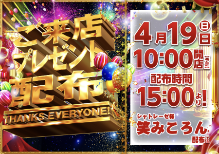 4月19日(日)ご来店プレゼント ダブルシュークリーム北海道純正クリーム【ダイナム岐阜高山店】 └オリジナル景品 4月19日(日)ご来店プレゼント ダブルシュークリーム北海道純正クリーム【ダイナム岐阜高山店】 └オリジナル景品 2026.04.19 ダイナム岐阜高山店 岐阜県高山市西之一色町2-121-1 詳しく見る