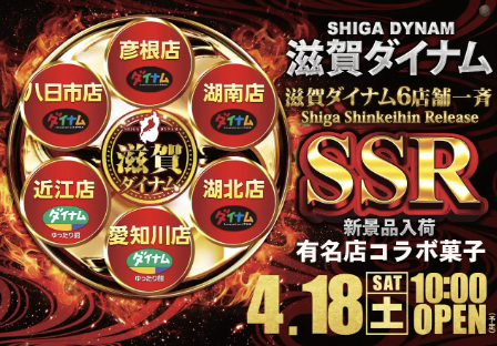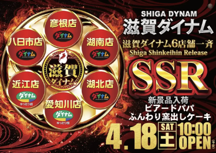 4月18日(土)ビアードパパふんわり窯出しケーキ【ダイナム滋賀愛知川店 ゆったり館】 └オリジナル景品 2026.04.18 ダイナム滋賀愛知川店 ゆったり館 滋賀県愛知郡愛荘町長野字小尻24番地 詳しく見る 愛知郡愛荘町