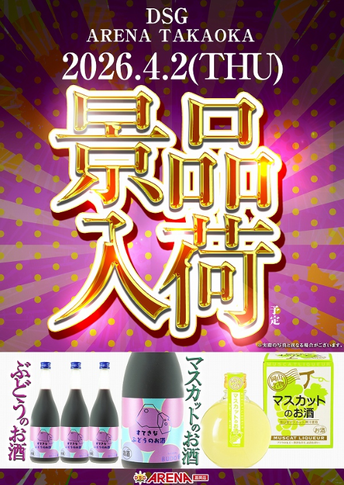 4月2日(木)ぶどうのお酒・マスカットのお酒【DSGアリーナ高岡店】 └オリジナル景品 4月2日(木)ぶどうのお酒・マスカットのお酒【DSGアリーナ高岡店】 └オリジナル景品 2026.04.02 DSGアリーナ高岡店 富山県高岡市四屋622-1 詳しく見る