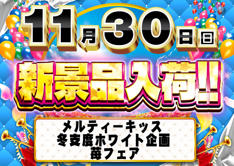 11月30日(日)メルティキッス・冬支度ホワイト企画・苺フェア【ダイナム秋田中仙店 ゆったり館】 └オリジナル景品 2025.11.30 ダイナム秋田中仙店 ゆったり館 秋田県大仙市下鶯野字上中嶋51番地 詳しく見る 大仙市