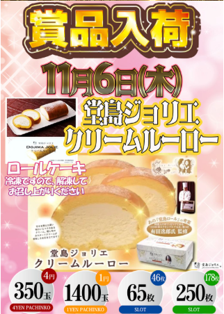 11月6日(木)堂島ジョリエクリームルーロー【SUPER COSMO PREMIUM堺店】 └オリジナル景品 2025.11.06 SUPER COSMO PREMIUM堺店 大阪府堺市西区浜寺石津町東2丁1-5 詳しく見る 堺市西区