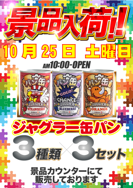 10月25日(土)ジャグラー缶パン【Gストーリー500】 └オリジナル景品 10月25日(土)ジャグラー缶パン【Gストーリー500】 └オリジナル景品 2025.10.25 Gストーリー500 京都府福知山市堀2710 詳しく見る