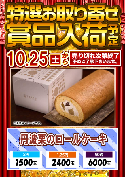 10月25日(土)丹波栗のロールケーキ【ピンクキャット田辺店】 └オリジナル景品 10月25日(土)丹波栗のロールケーキ【ピンクキャット田辺店】 └オリジナル景品 2025.10.25 ピンクキャット田辺店 和歌山県田辺市新庄町1667-2 詳しく見る