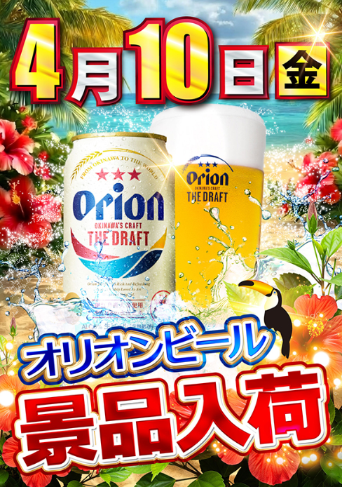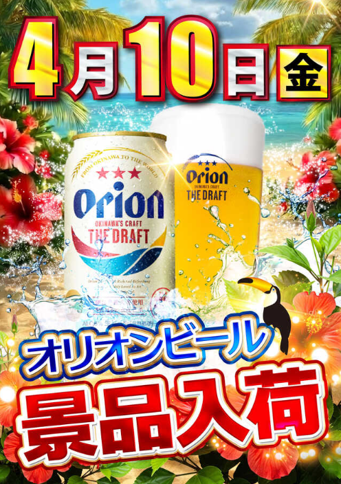 4月10日(金)オリオンビール【グランワールドカップ米子店】 └オリジナル景品 4月10日(金)オリオンビール【グランワールドカップ米子店】 └オリジナル景品 2026.04.10 グランワールドカップ米子店 鳥取県米子市熊党331-12 詳しく見る