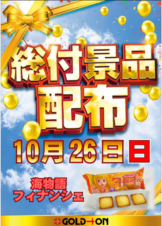 10月26日(日)海物語フィナンシェ【ゴールドプラスオン高岡店】 └オリジナル景品 10月26日(日)海物語フィナンシェ【ゴールドプラスオン高岡店】 └オリジナル景品 2025.10.26 ゴールドプラスオン高岡店 富山県高岡市下黒田字畑田728-2 詳しく見る